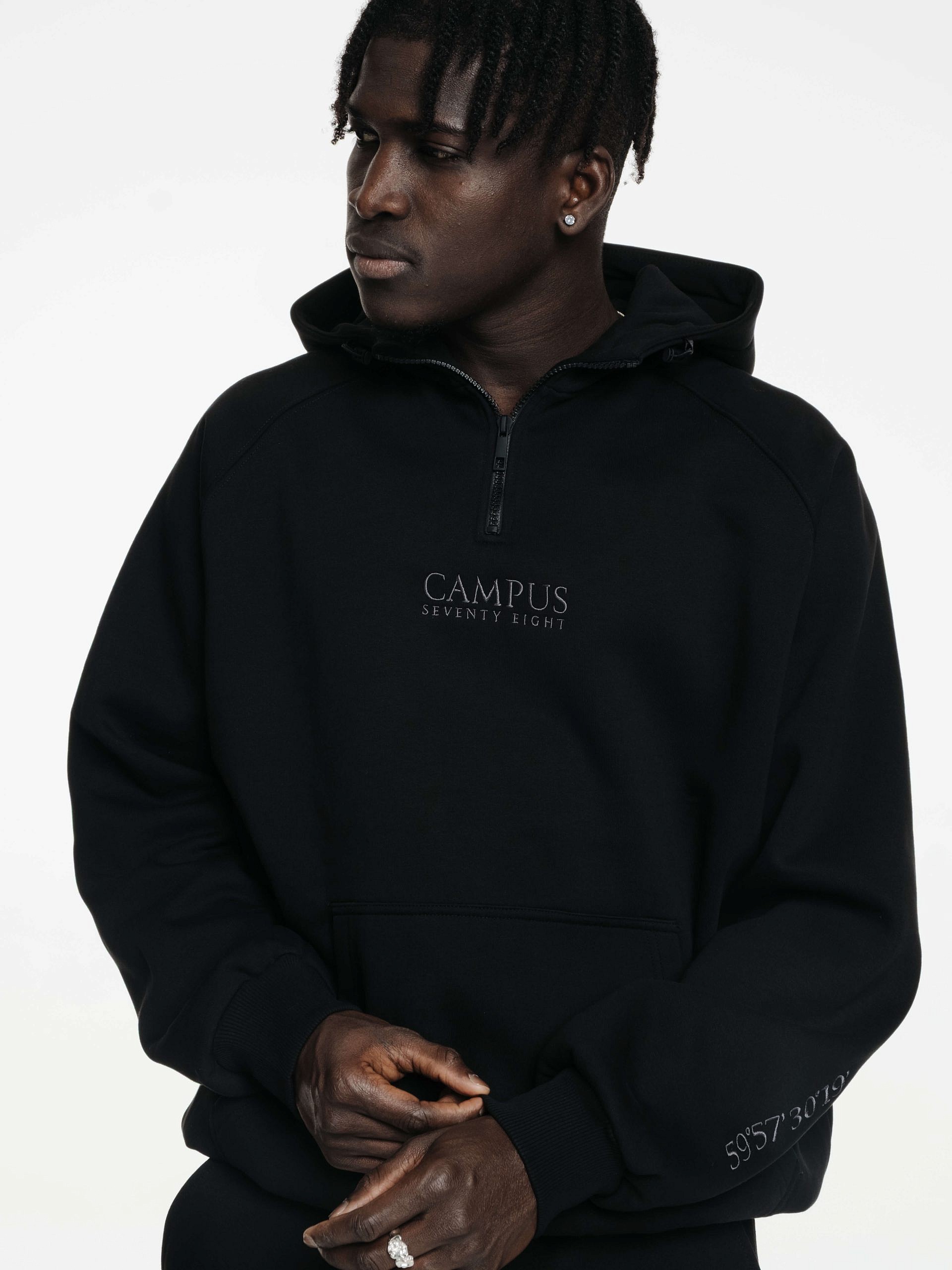 - Новая вышивка Campus Seventy Eight на груди по центру и вышивка координат Санкт-Петербурга на рукаве
