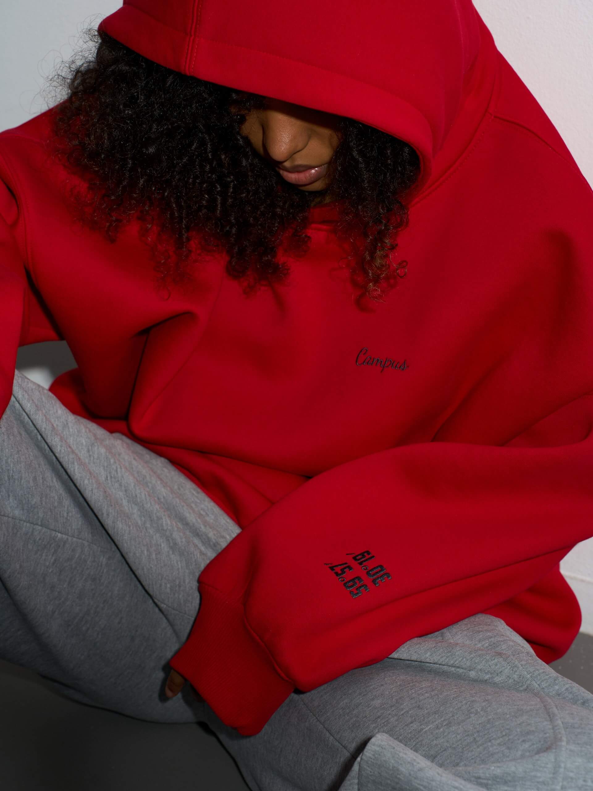 - Классическая вышивка Campus и координат на рукаве графитового цвета