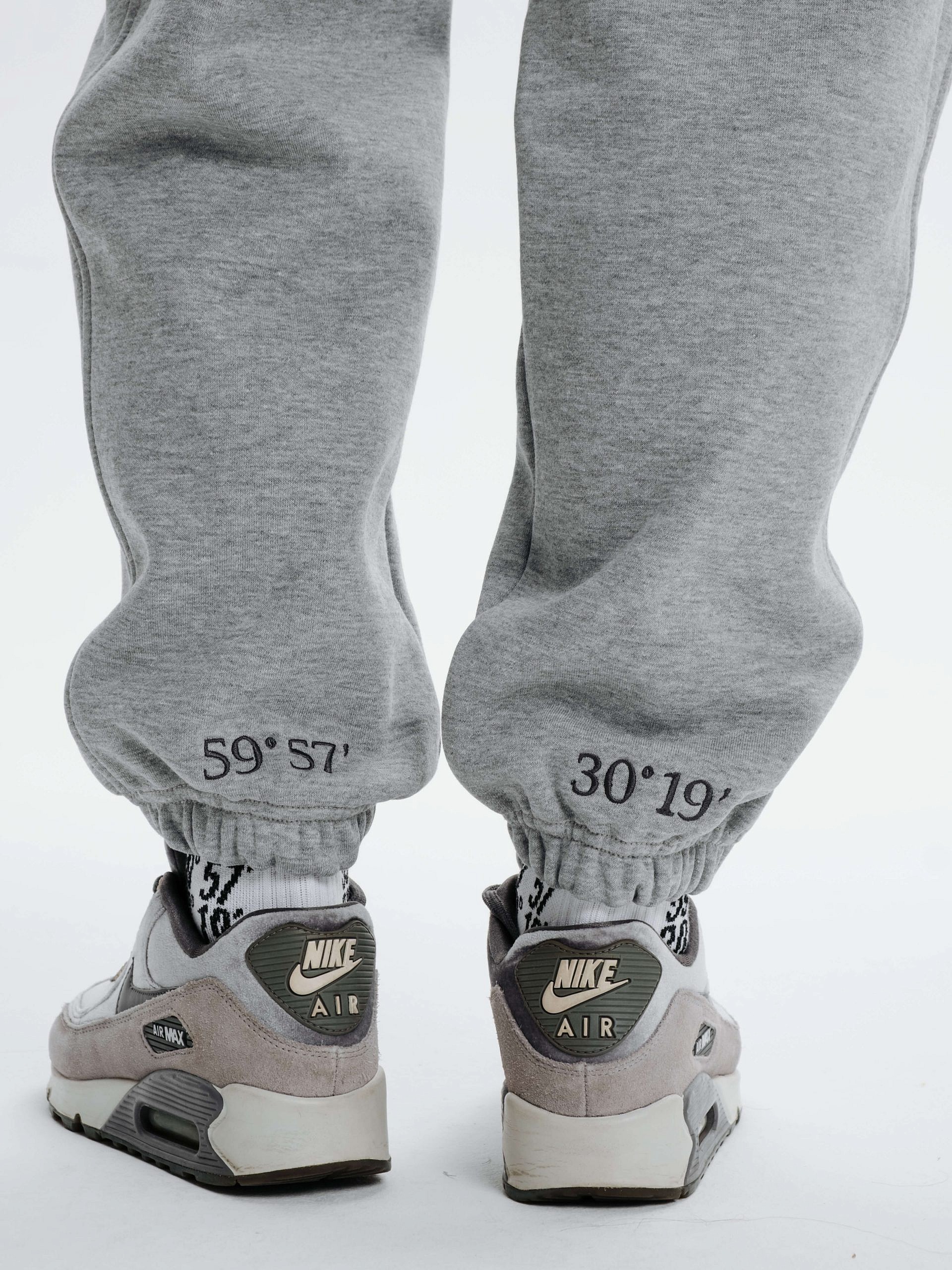 - Вышивка координат Санкт-Петербурга сзади внизу штанин